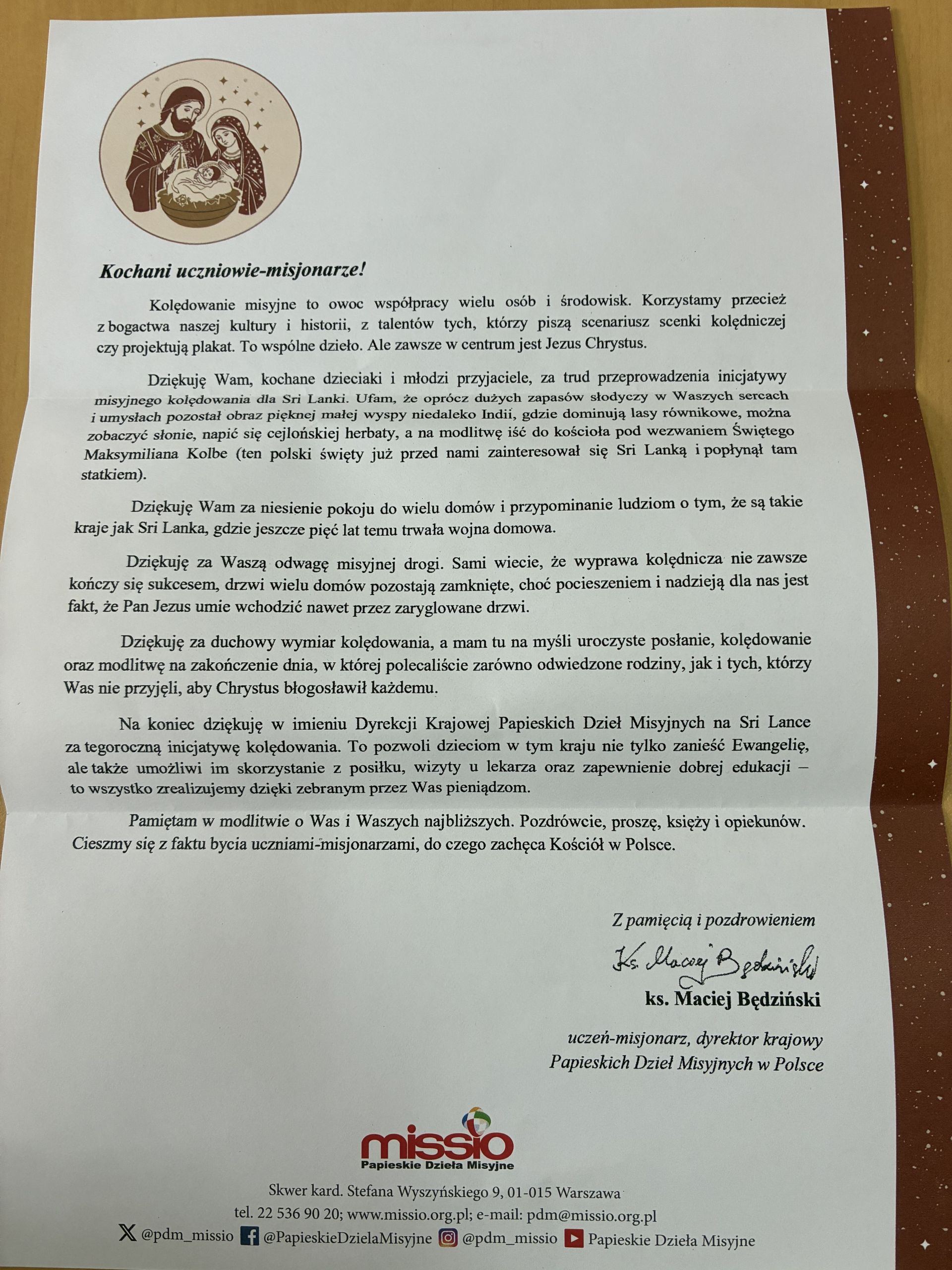 Otrzymaliśmy oficjalne podziękowania od Papieskich Dzieł Misyjnych za udział w akcji Kolędnicy Misyjni 2025/2026 ❤️